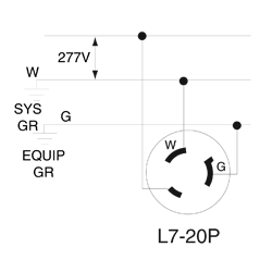 20 Amp, 277 Volt, NEMA L7-20P, 2P, 3W, Locking Plug, Industrial Grade, Grounding - Black-White